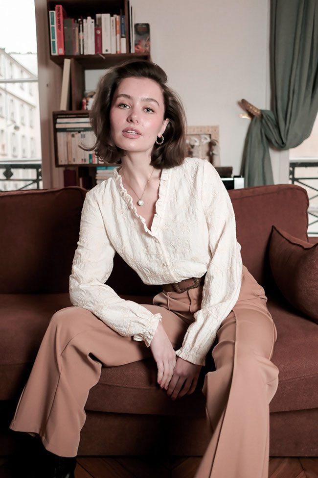 Detalii: Material brodat, volanase la guler si mansete
