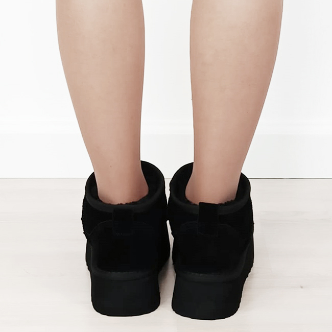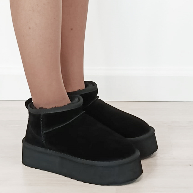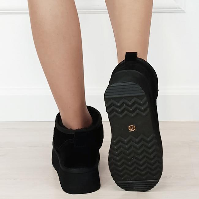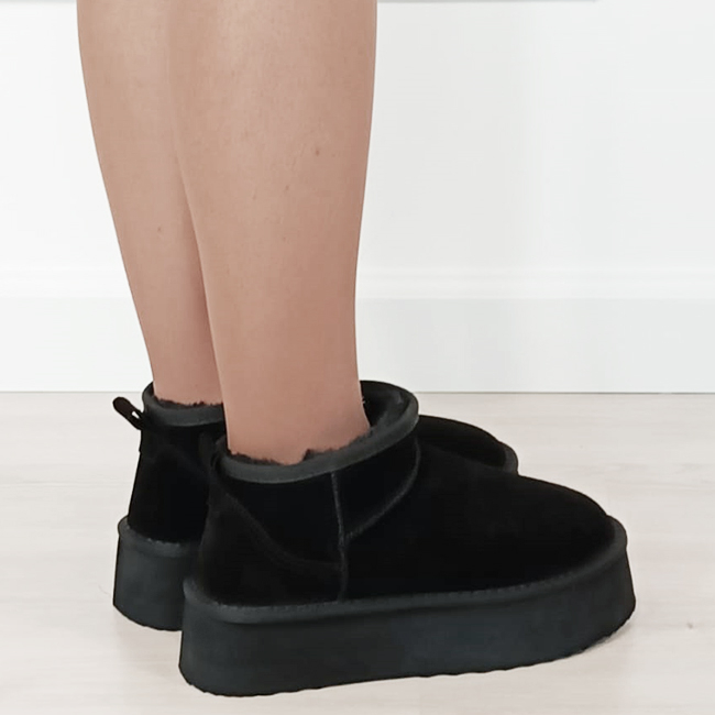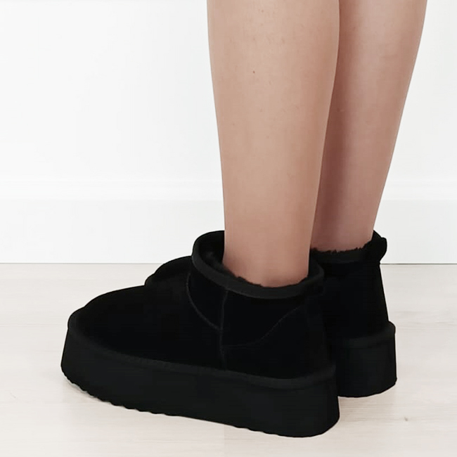 in interior sunt captusite cu blanita ecologica calduroasa INALTIMEA TOTALA - 13 cm INALTIME TALPA IN SPATE - 4.5 cm INALTIME TALPA IN FATA - 4 cm NUANTA - negru STIL - casual
