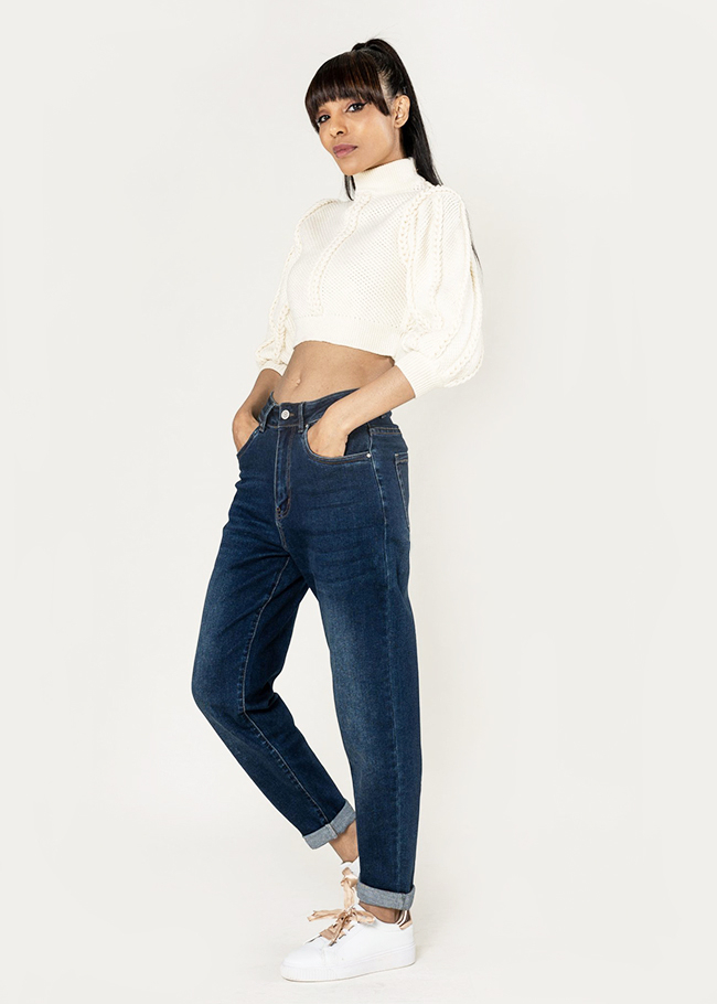 Nina Carter Blugi dama Mom Fit Nina Carter Albastru inchis B-P502-9 M8