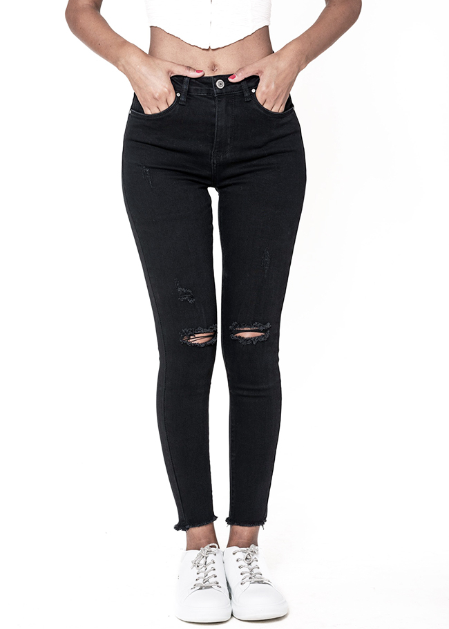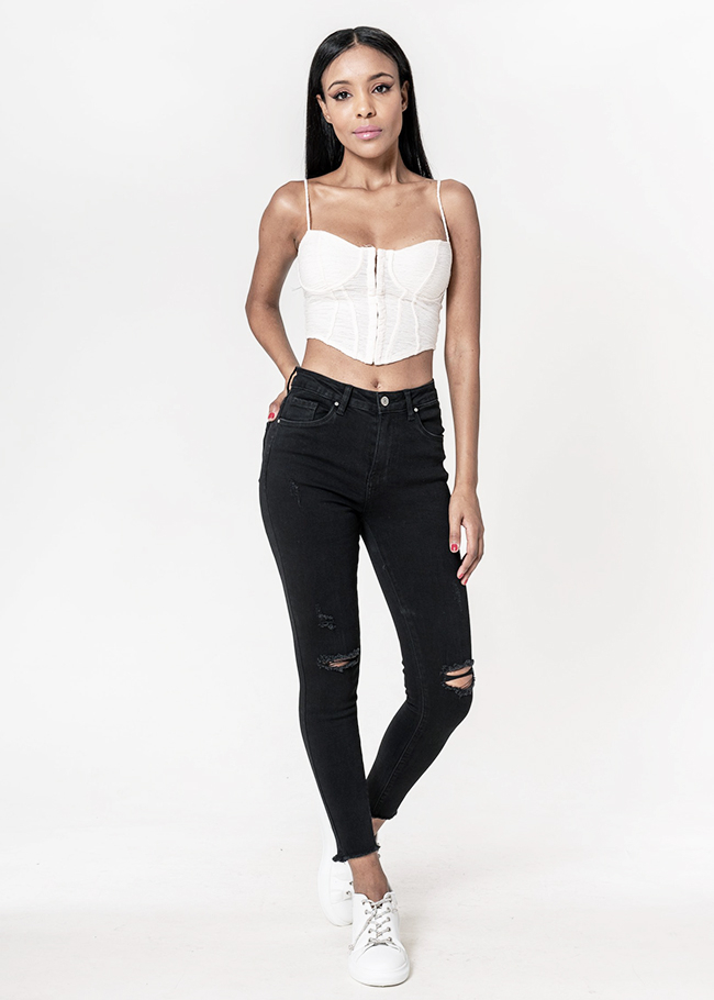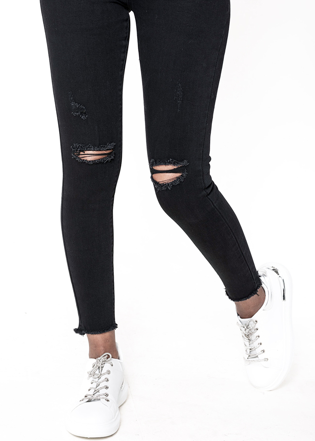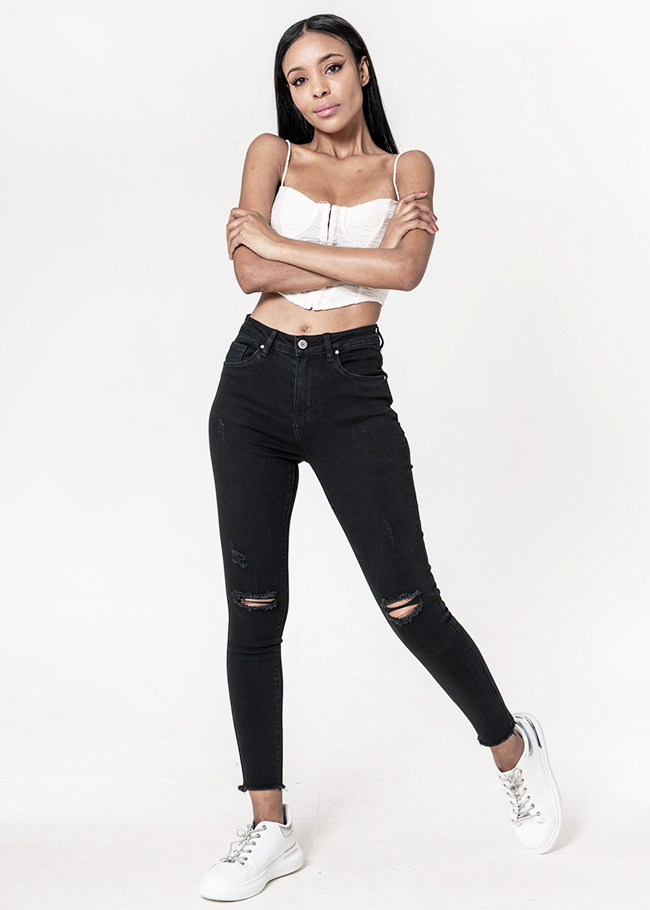 Nina Carter Blugi slim dama cu detalii rupte, Albastru B-P501-8 M10