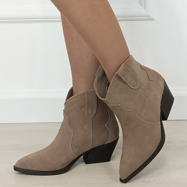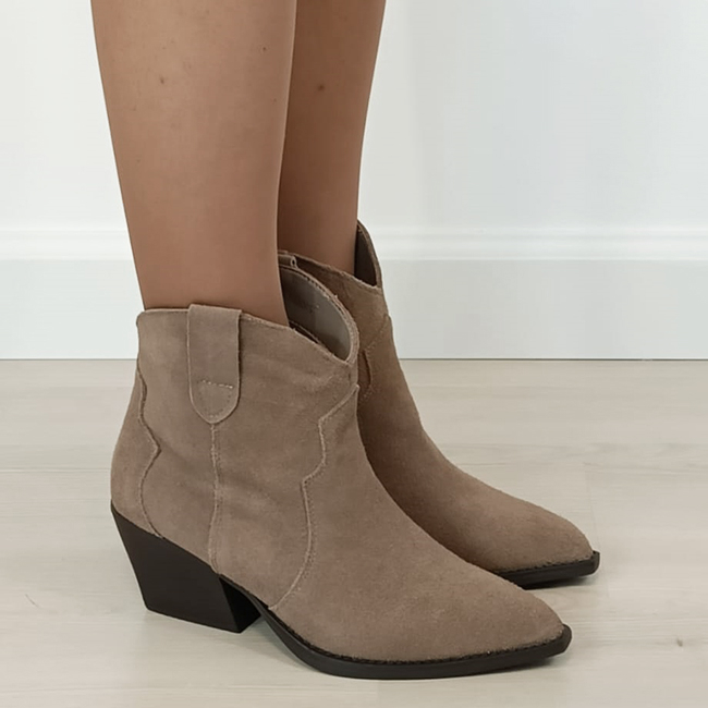 botine kaki din piele naturala intoarsa,