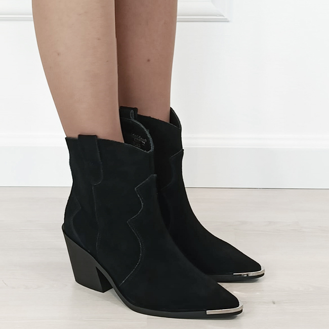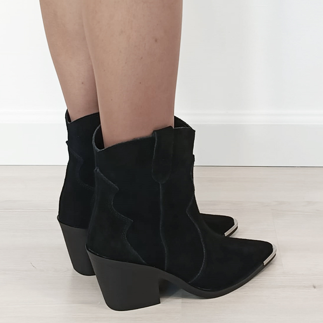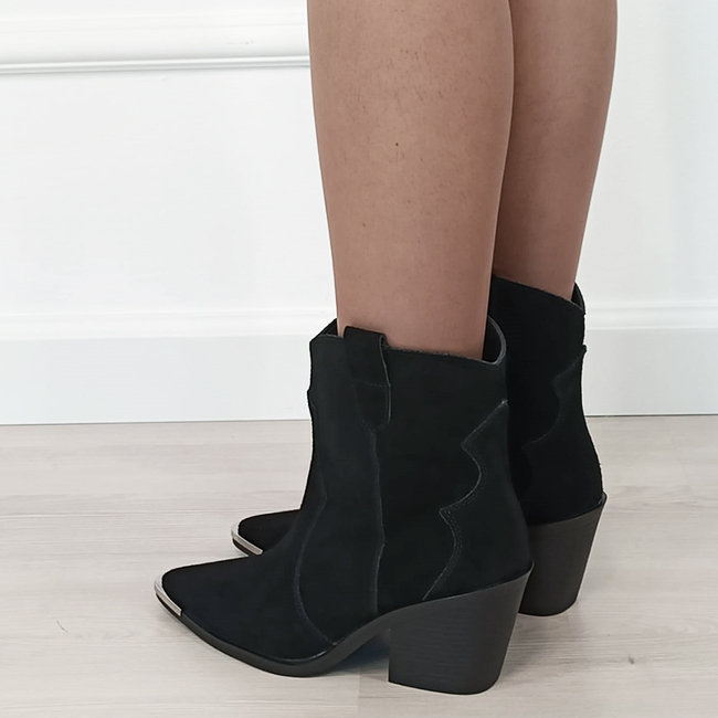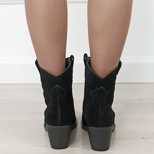 SOFILINE Cizme scurte negre din piele naturala cu toc comod B-6397 114