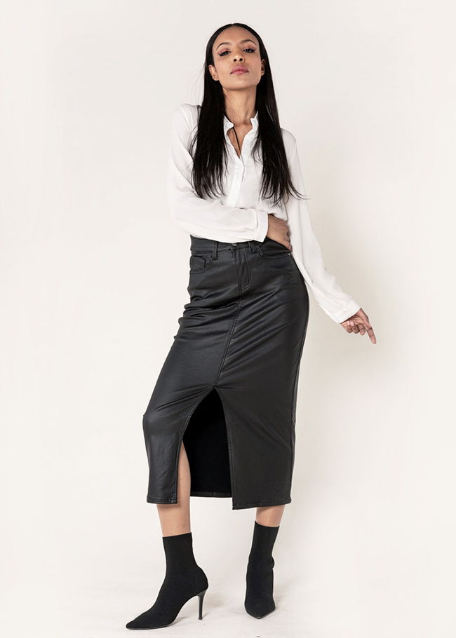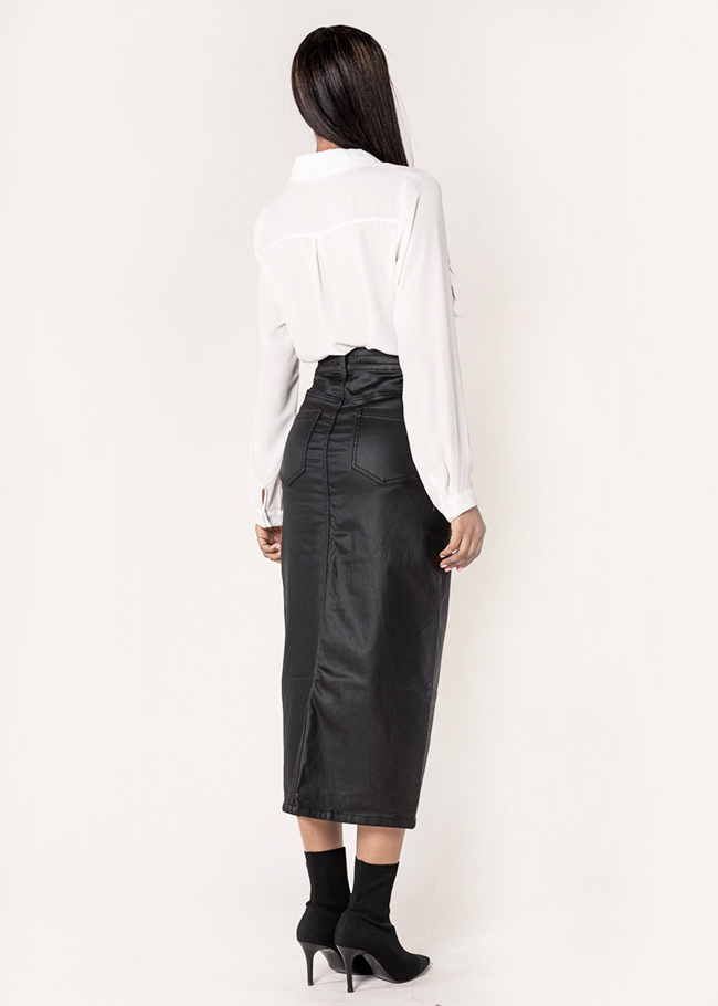 Nina Carter Fusta midi din piele ecologica Negru mat B-LC215 M9