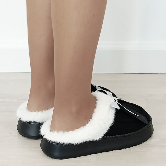 papuci negrii din material textil calduros,