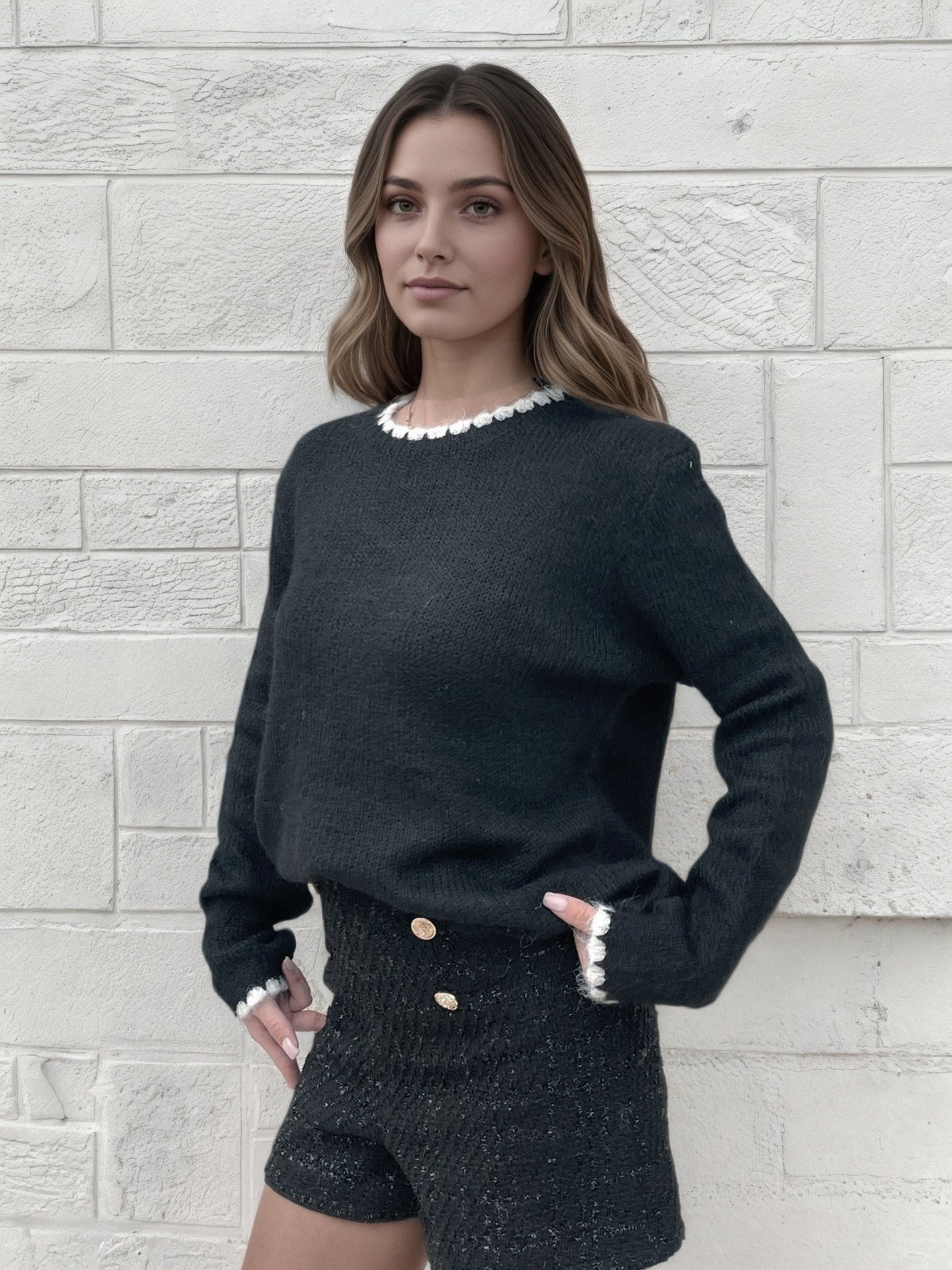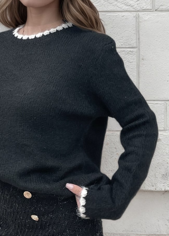 • Pulover negru tricotat, calduros,